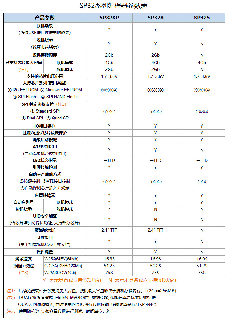 SP325是深圳JXF吉祥坊科技最新推出的一款SPI FLASH专用高速量产型编程器,全面支持国内外各厂商的SPI NOR/NAND FLASH、I2C/MicroWire等EEPROM的高速烧录。采用高速MCU+FPGA架构, 内建硬件驱动引擎和IO动态分配技术,支持SPI FLASH的QUAD(四通道)模式, USB2.0高速(480Mbps)通讯接口,多重的创新和领先技术有效确保了量产效率和稳定性,实测烧录一颗W25N01GV (1Gb SPI NAND)仅需75s(擦除+编程+校验)。